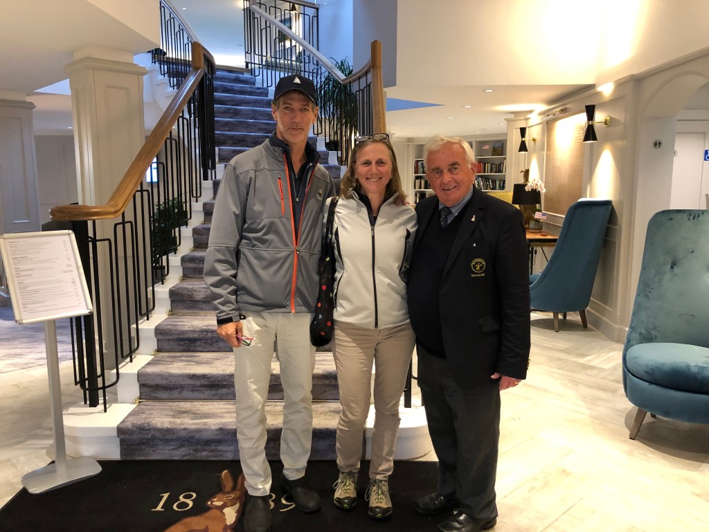 Maybe it was the lingering shock of 9/11 or the fact this was my first golf trip to Ireland, but my senses were heightened and I remember lots of little details about that 10-day visit so many years ago. It rained so much in Lahinch that our wet clothes and golf bags steamed up our little room on the second floor of the tiny B&B, never really drying out until we returned to the US. We stopped by to check out a new course under construction in County Clare – it was Doonbeg in the making. It was so cold we had to buy wool hats in a yurt serving as their temporary Pro Shop. Onward to Ballybunion, then Tralee (the wind off the Atlantic was so strong I couldn’t keep my balance on the tee box and I became a human ballast for Evan’s tripod positioned high up in the dunes), to Waterville (the ever-welcoming General Manager, Noel Cronin, generously offered us multiple pots of tea to stay warm) and then on to Kinsale and Old Head where I was introduced to my first of many Irish coffees (I don’t drink coffee and I don’t drink whiskey, but what a perfect combination to revive rain-soaked, chilled-to-the-bone photographers). Mostly, I remember feeling warmly embraced by this country and its people.