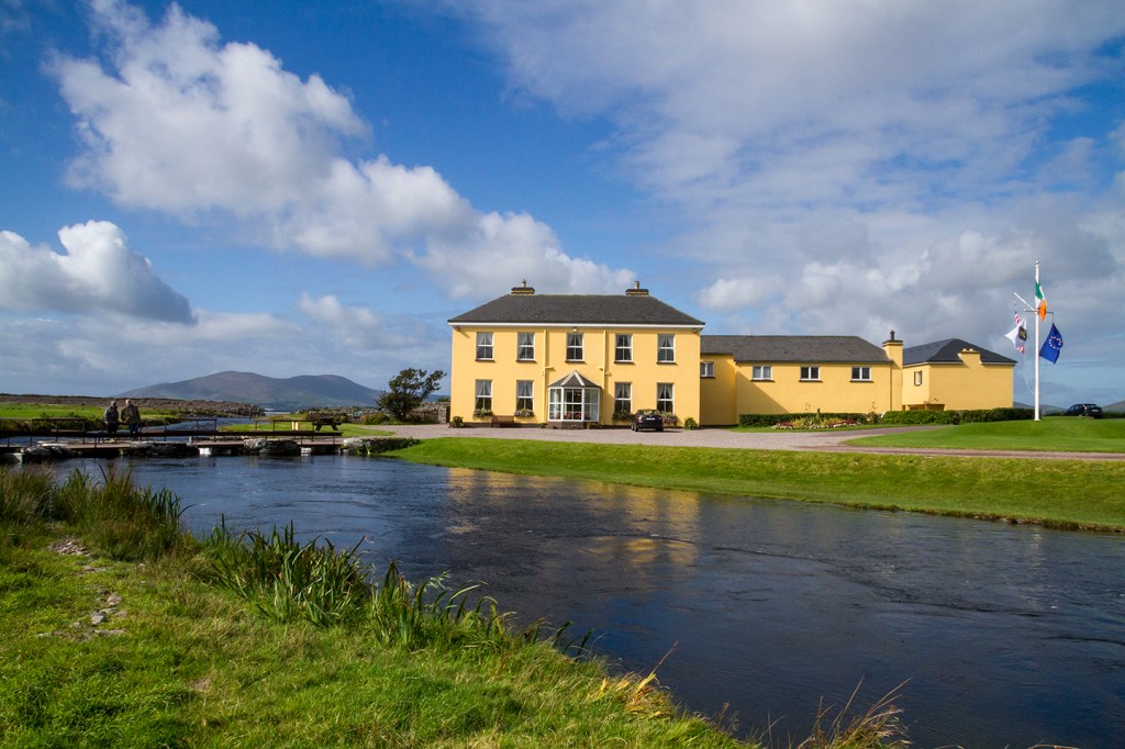 Peering over the stone wall down the pebbled drive towards the yellow Georgian manor house you can imagine being taken back in time. The Butler family built the manor in 1790 and called their 50-acre estate “Waterville”. The Currane River flows along the south side of the property into Ballinskelligs Bay. It is along this stretch of the river that an angler or two can usually be seen fly-fishing in Butler’s Pool, the gateway for salmon and sea trout entering Lough Currane.